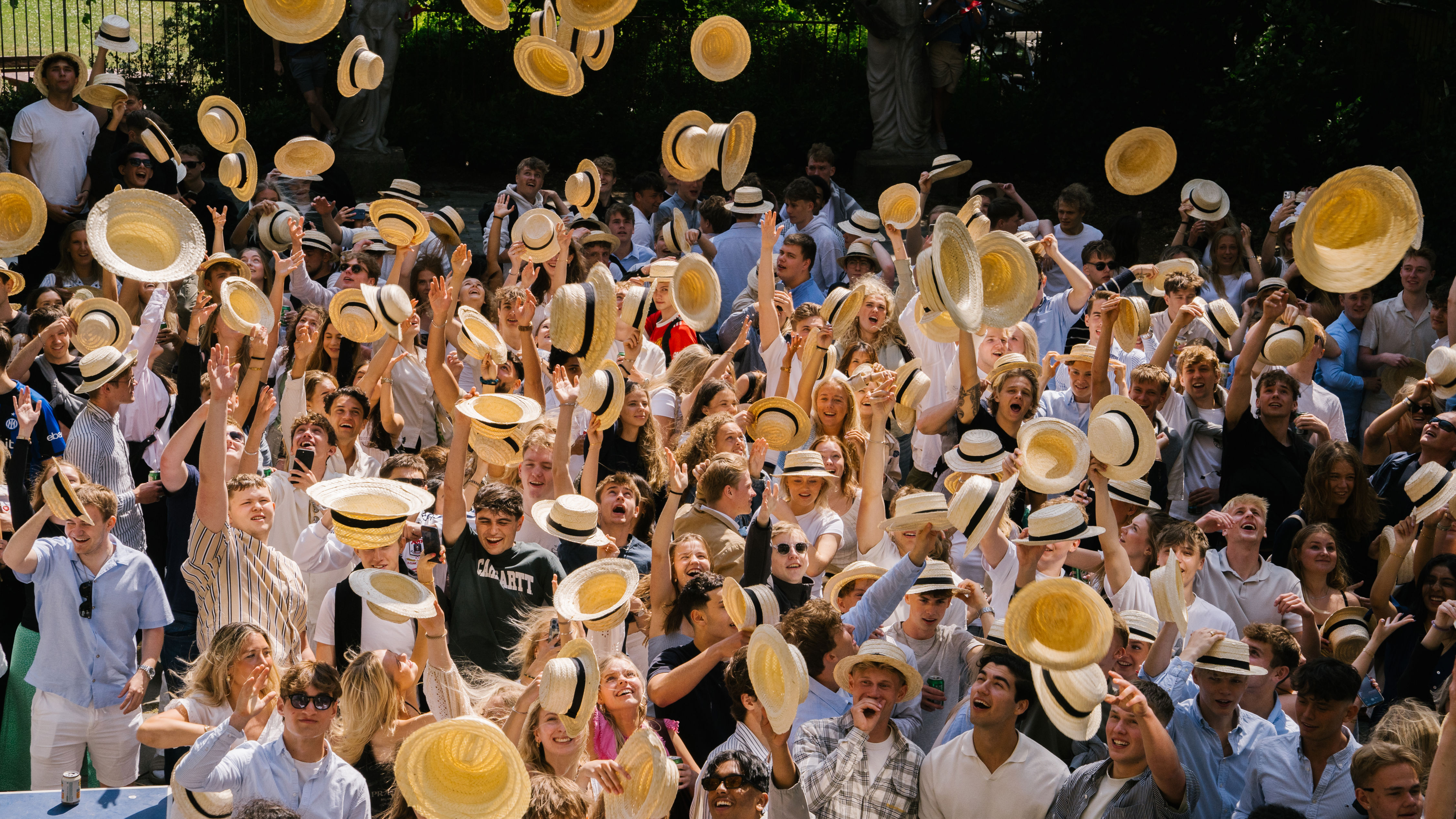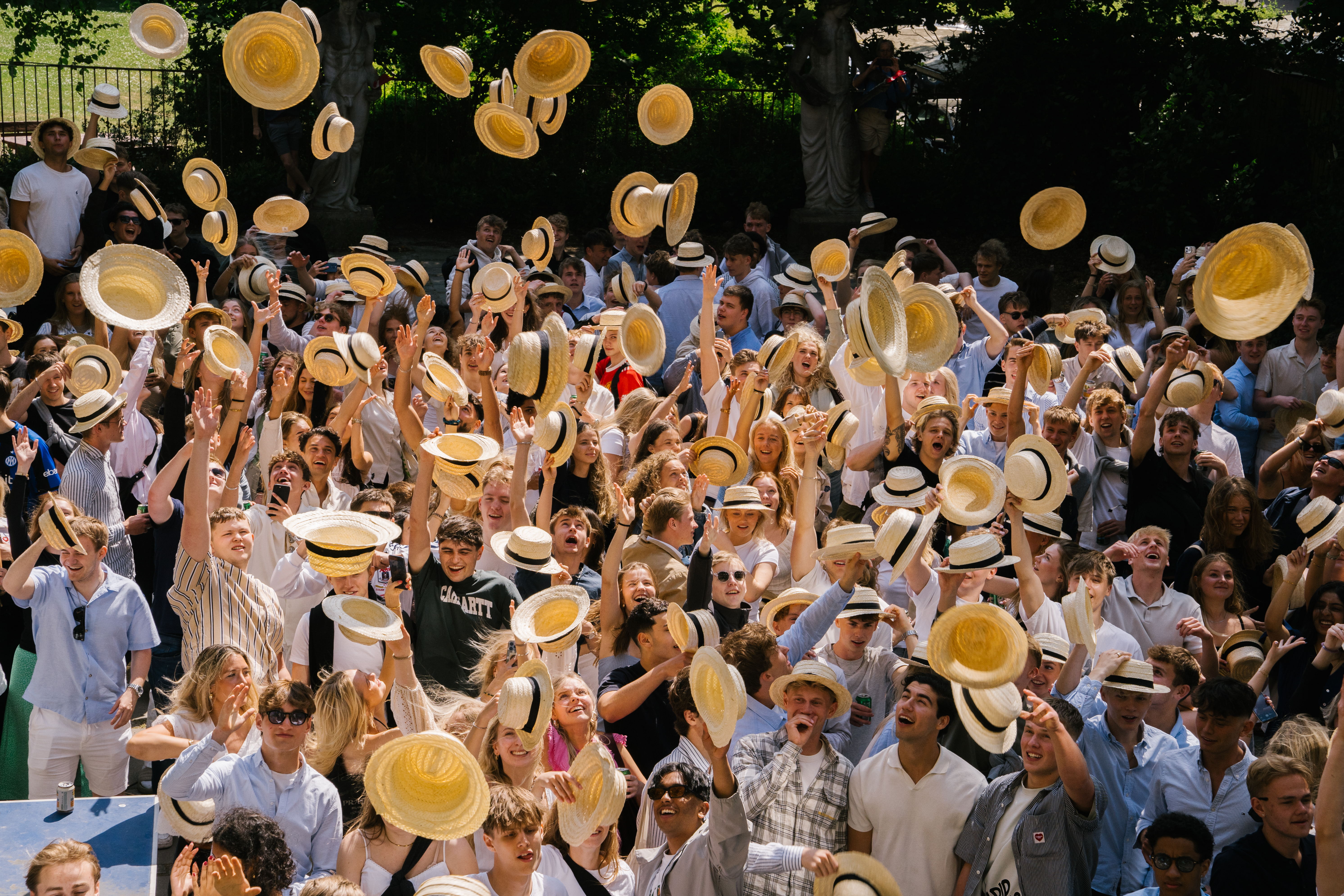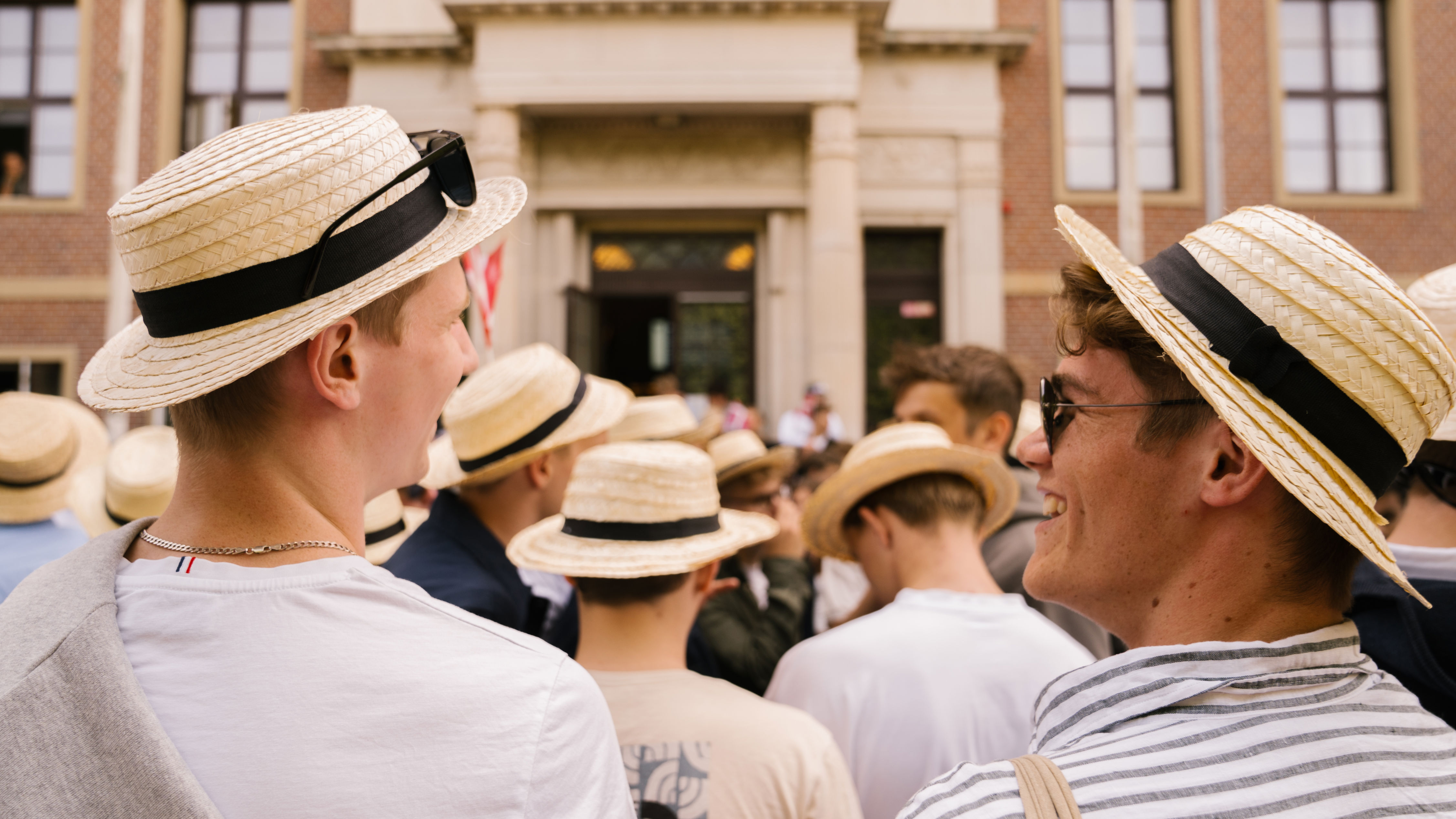 Endnu en stolt Niels Brock-tradition. I maj samles alle 3.G'erne fra EUX og HHX-gymnasierne på deres sidste skoledag. Her ifører de sig stråhatte, hvorefter nogle hopper i både, og andre går i fælles optog gennem byen til de forskellige gymnasier. På denne dag bliver det også afsløret, hvilke fag der er udtrukket til eksamen.